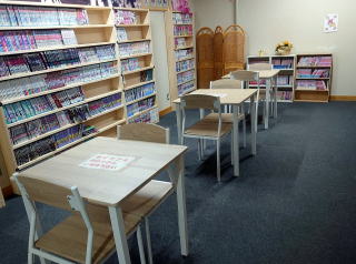 マンガルーム⇒コミックカフェに名称を変更しました。 リラックスしたスペースで漫画が読み放題! |